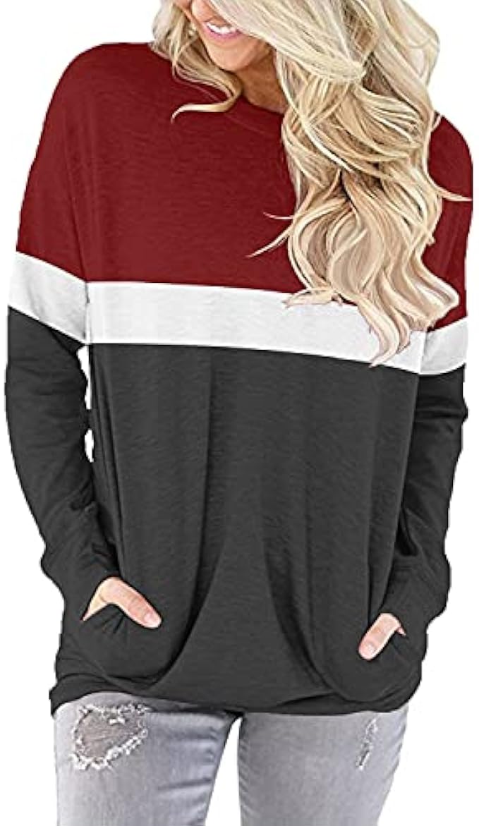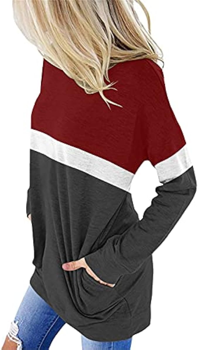 onlypuff Womens Pocket Shirts Casual Loose Fit Tunic Top Comfy Cute Sweatshirts Long Sleeve S-3XL