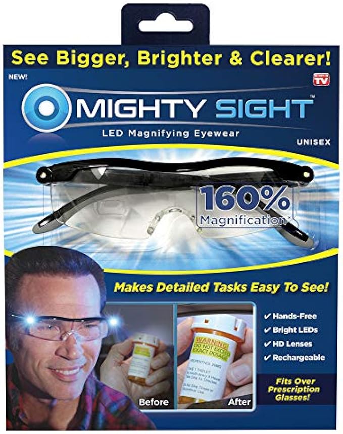 MAGNIFY VISION: See the most intricate details with Mighty Sight magnifying glasses. Its high definition optical lenses utilize new magnification technology to provide 160% magnification without eyestrain & fatigue. No Batteries Needed