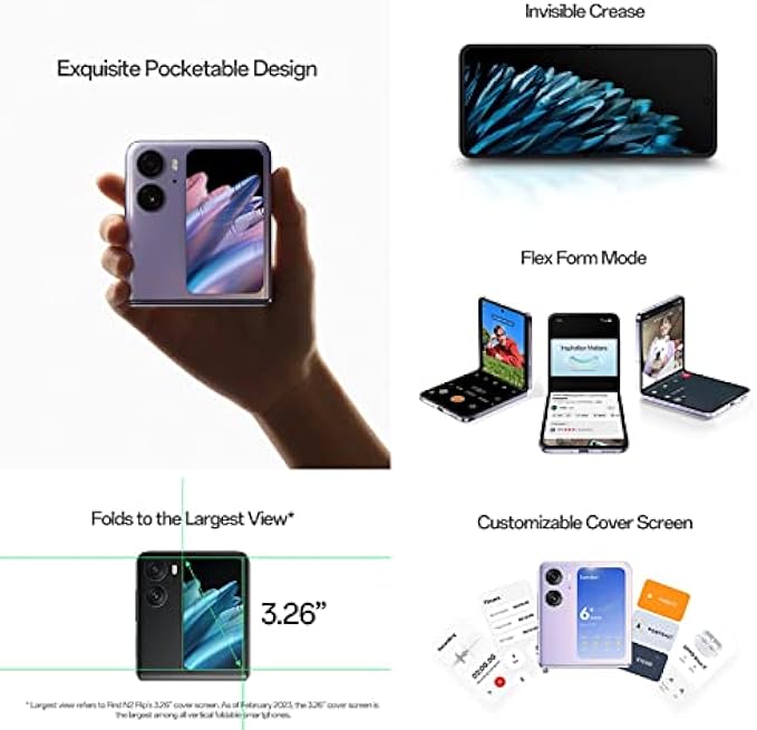 OPPO Find N2 Flip Dual-SIM 256GB ROM + 8GB RAM (GSM only | No CDMA) Factory Unlocked 5G Smartphone (Moonlit Purple) - International Version