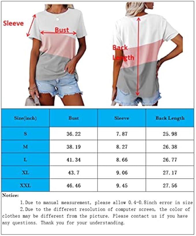Material:Color block short sleeve t shirts tops for womens and teen girls,the fabric of this shirts includes cotton,polyester and spandex,super soft and comfortable