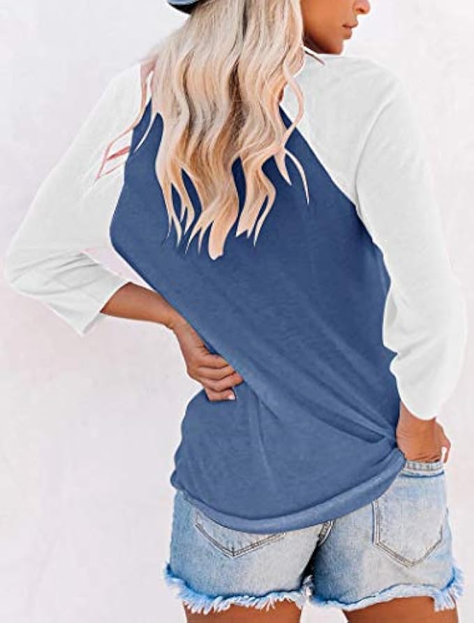 Orchidays 3/4 Sleeve T-Shirts Casual Color Block Cute Tops Baseball Blouses