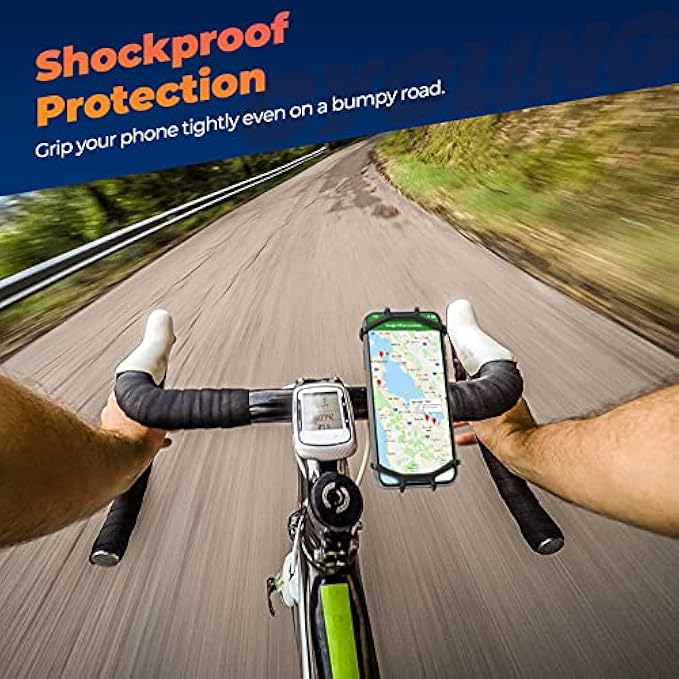 Wide Compatibility: Universal Bike, Stroller, Grocery Cart, Wheelchair, Treadmill, Motorcycle, Handlebar(0. 66" - 1. 68") in diameter. Made of high quality elastic silicone. Securely fit many cell phones between phone screen size(4. 0”-6. 5”). Compatible with iPhone 13/12 Pro Max/XS max/SE/XS/XR/X/8 Plus/8/7Plus/7/6Plus/6, Galaxy S20/S10/S9 Plus/S8/S8 Plus/S7/Note 8, Google Pixel Series and more.