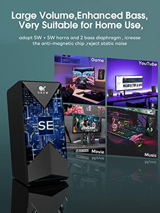 OROW Computer Speakers, Desktop Speakers with Various Colorful LED, 10W Gaming Speakers with Volume Control,RGB Computer Speakers for Monitor/Laptop,3.5mm Aux Input,Lights Can be Turned Off