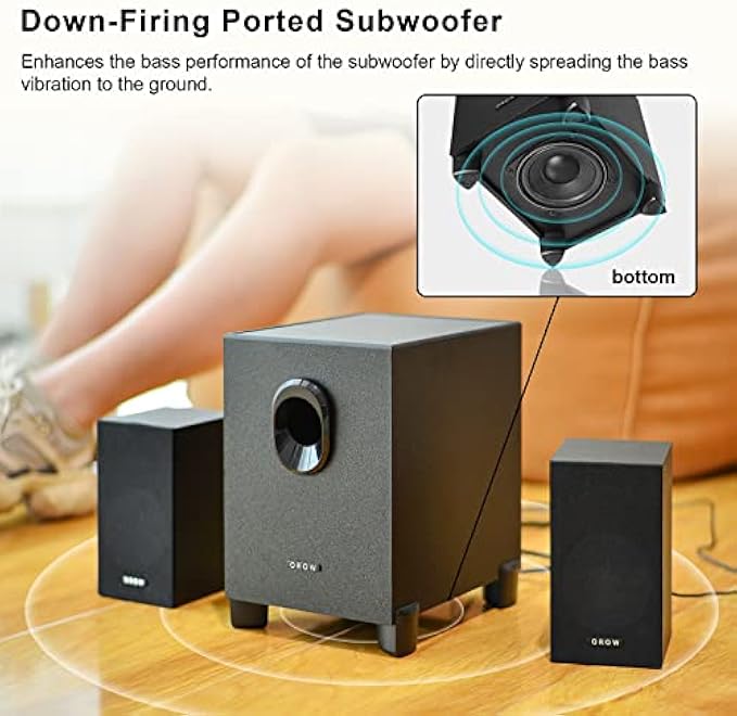 ?【Perfect Size for PC】Subwoofer is small enough to easily fit in a tight space, tucked away under a desk or bed. and Small Speakers Will not take up the entire office space.