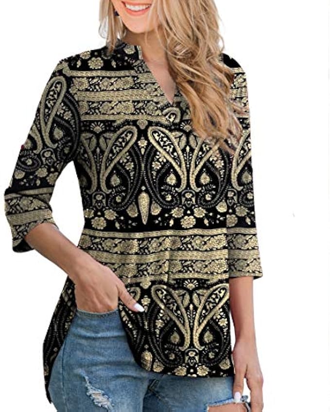95% Polyester, 5% Spandex, Tops carefully: hand wash recommend, do not bleach, dry in the sun Button closure Hand Wash Only womens plus size tunic tops material: 95% Polyester, 5% Spandex. Soft, Lightweight, Stretchy fabric, comfortable to wear with loose fit style 3/4 Sleeve shirts feature: roll up with button , v neck, flare and high low hem, casual style, flowy, lightweight and comfy fabric womens tops dressy casual designed cutting to make you look slim, and long enough to hide belly and hips This blouses easy to pair with jeans, shorts, skinny leggings for the decent look. Great for leggings with scarf, and boots in fall and winter Dressy casual shirts for women Occasion: Dating, Party, Evening, Casual, Travel, Home, Office, Vocation, Beach, maternity etc