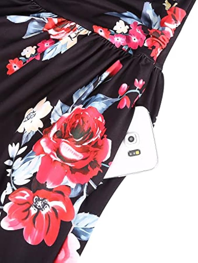 OUGES Womens' V-Neck Pattern Pocket Maxi Long Dress
