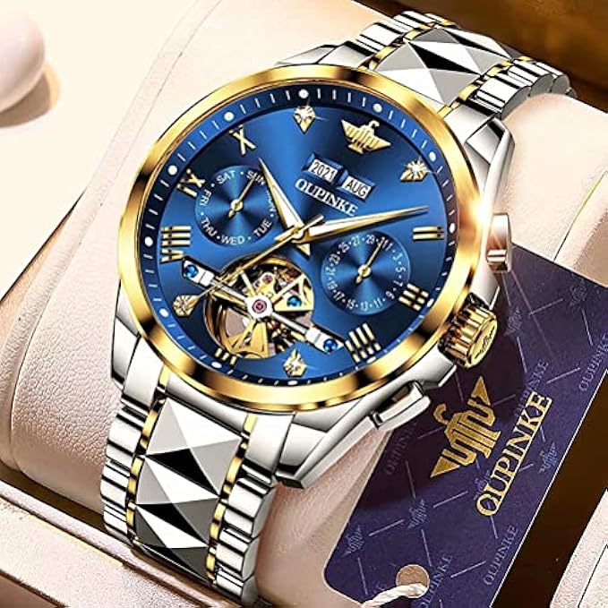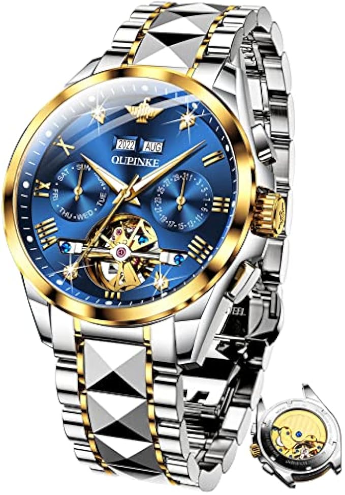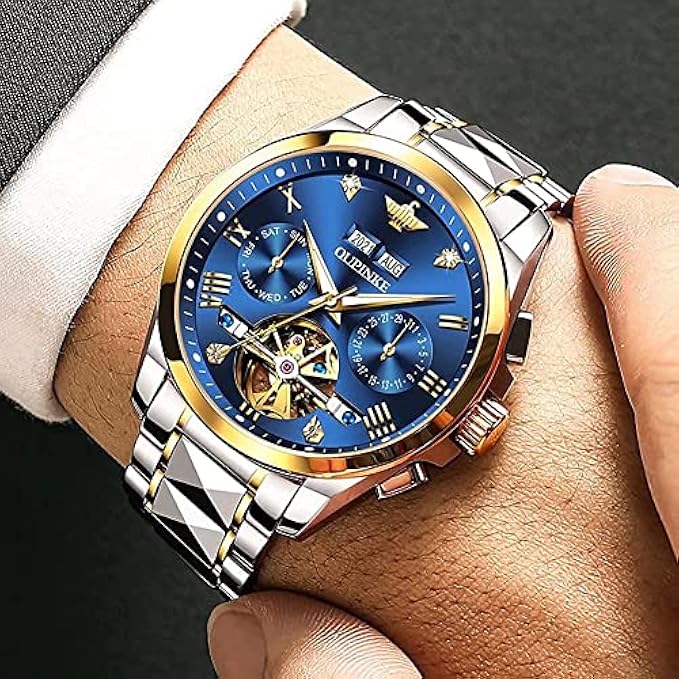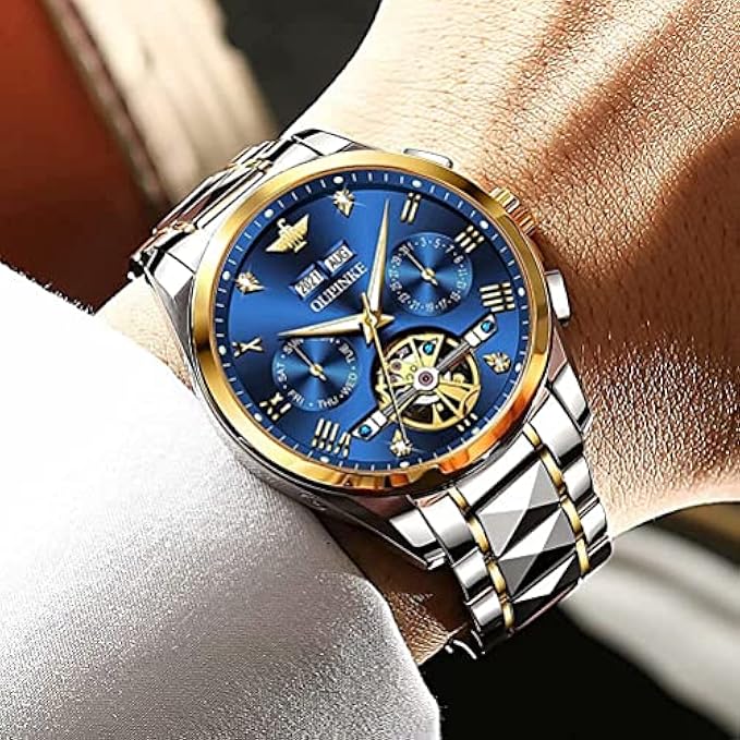 Automatic Watches for Men: Imported durable Japanese mechanical Self-Winding movement, support self-winding and manual winding, no battery required, can run stably over 10 years.
