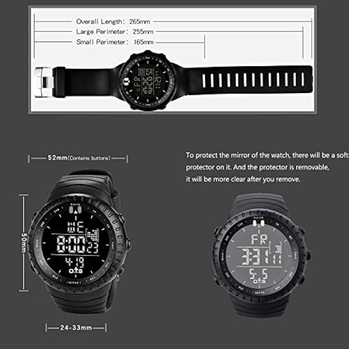 Digital watch: Fashionable sporty dial design, military style outlook. Big numbers display with light and large dial, show time clear even in the dark. Use import EL Lamp, press "LIGHT" button to see the time clearly in the light, easy to read