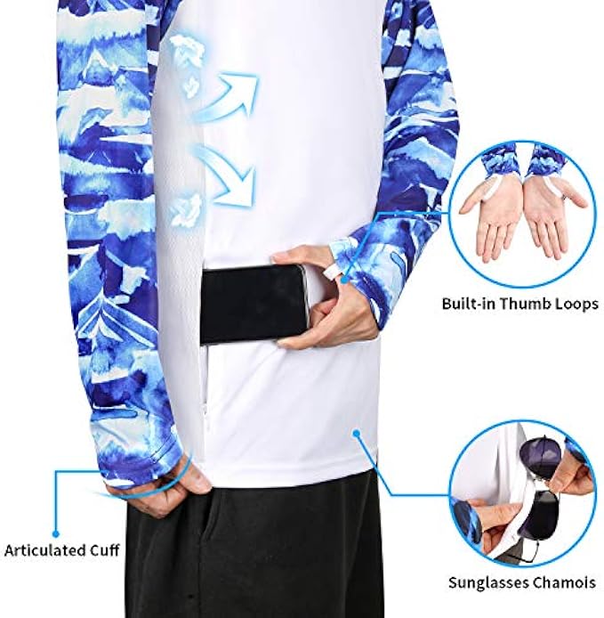 Professional Design: Built-in thumb loops secure the sleeves in place letting you cast fishing rod from any angle without any worry about sleeves; Your glasses are often foggy when you go fishing in the summer, sunglasses chamois inside bottom hem solves all this nicely