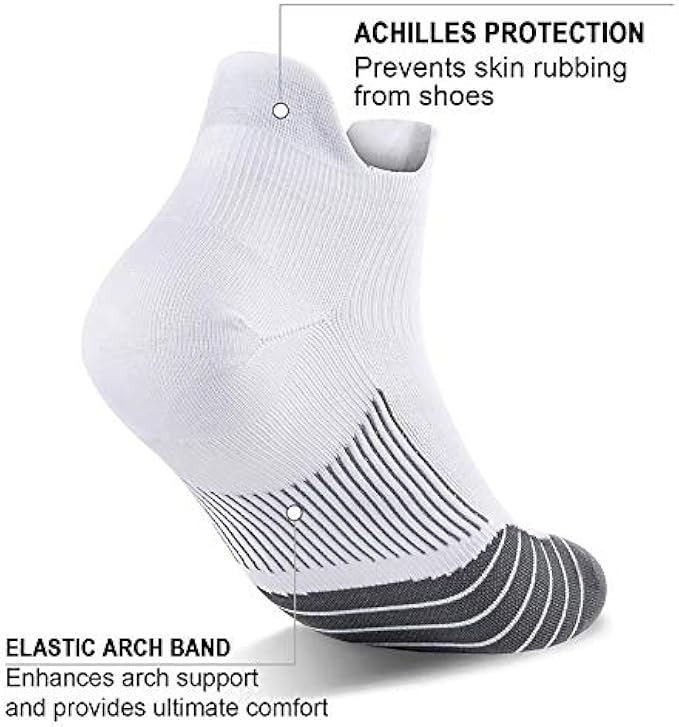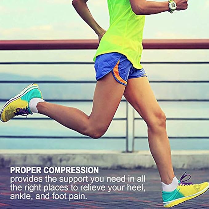 [MORE COMPRESSION FOR EXERCISE] COMPRESSION is proven to improve blood flow, move faster, react quicker and use less energy. Targeted compression zones provide varying levels of support from moderate to extra firm. These ankle compression socks are designed to promote blood circulation and oxygen flow preventing cramping, fatigue, swelling and helps in muscle recovery, plantar fasciitis