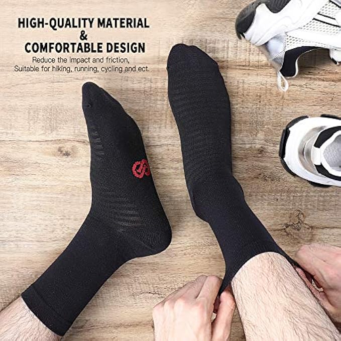 [MOISTURE-WICKING MANAGEMENT] Our compression socks are made of comfortable breathable material with lightweight design. Mesh ventilation construction creates maximum airflow to keep your feet cool and dry. The fabric also helps keep your feet cool by sucking up all the sweat and moisture produced by your feet