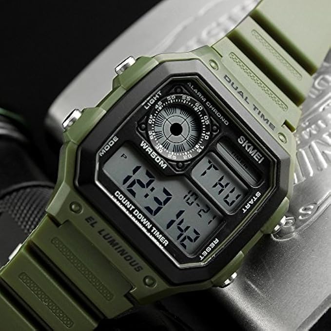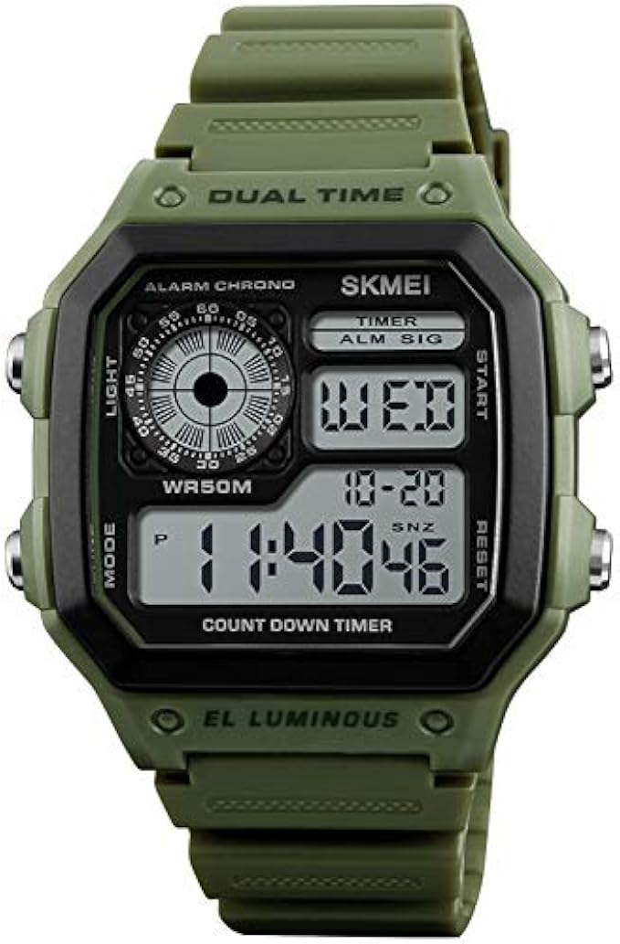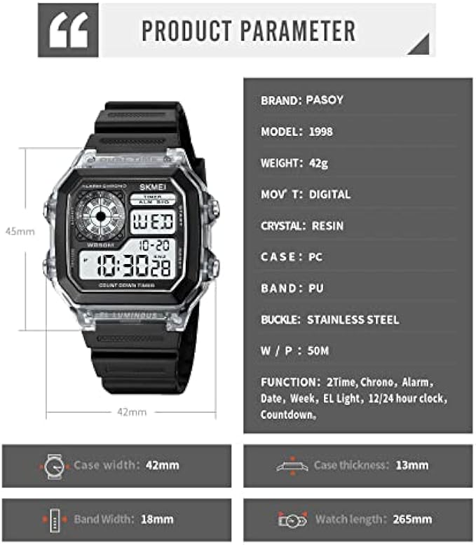PASOY Men's Digital Multi-Function Watches Dual Time Alarm Stopwatch Countdown Backlight Waterproof Watch
