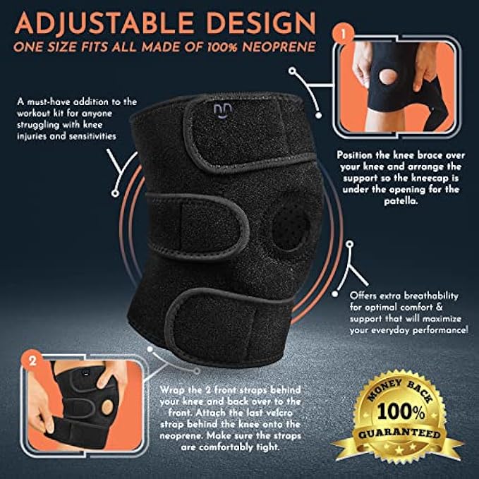 ONE SIZE FITS ALL - Our knee brace for exercise is one size fits all, so you can order with peace of mind knowing its size will be just perfect for you. Made of 100% Neoprene, it offers extra breathability for optimal comfort and support that will maximize your everyday performance!