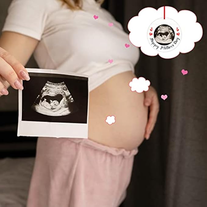 PETCEE First Mothers Day Ornaments Gifts for Mom Bump Ultrasound Picture Frame Ornament for Mom to be New Mom Expecting Mother Baby Sonogram Photo Frame Ornament Pregnant Gifts for Mom Women