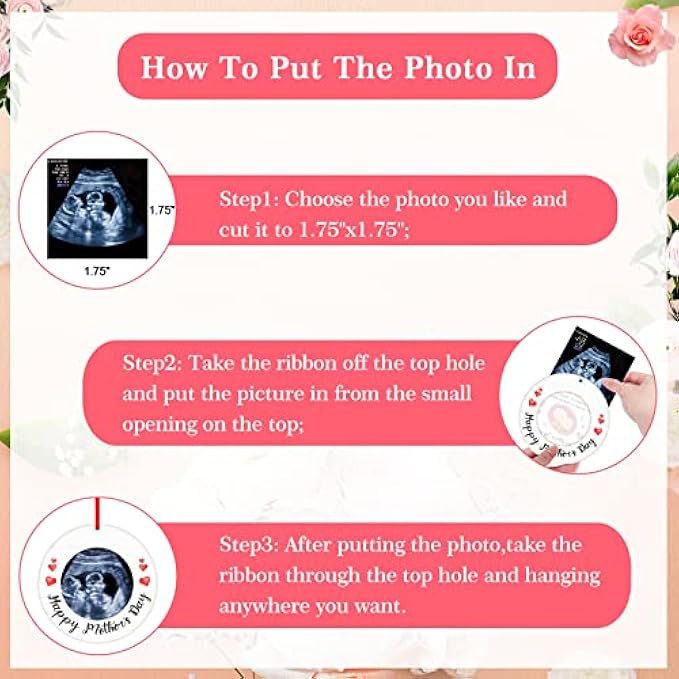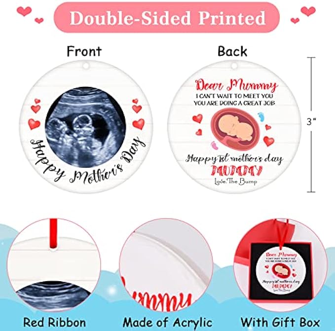 • ❤️【Size】: Bump's first Mothers day ornament is about 3", round, and fits for 1.75"x 1.75" sonogram photo, perfect for baby shower, baby nursery decor, gender reveal party, pregnancy announcement, baptism use.