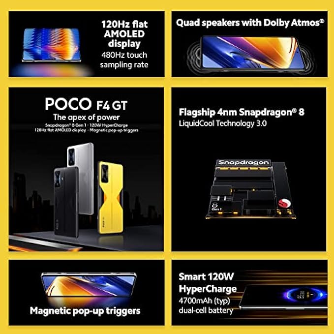Poco F4 GT 5G + 4G LTE 128GB + 8GB Factory Unlocked 6.67" 120Hz 64Mp Triple Camera (Not Verizon Sprint Boost Cricket Metro At&T) + (w/Fast Car Charger Bundle) (Knight Silver)