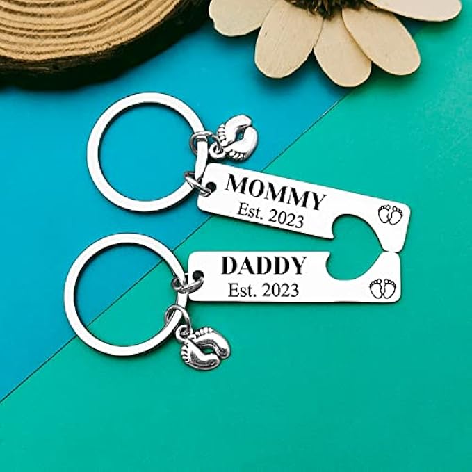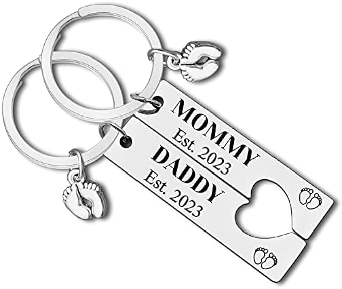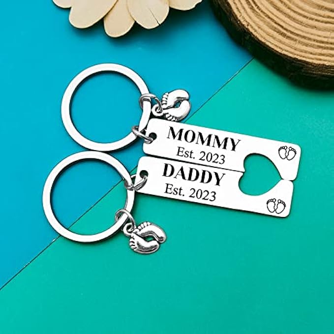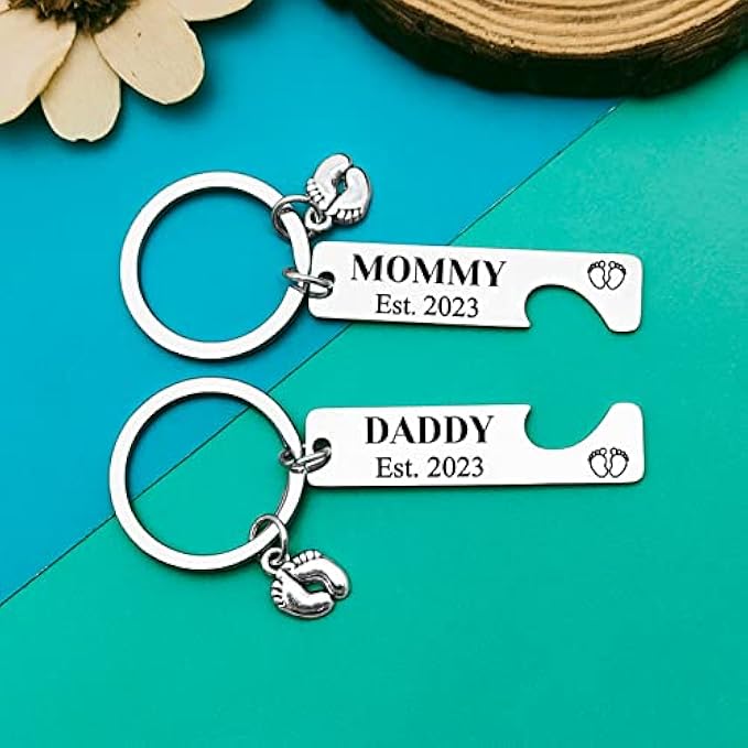 Pregnancy Announcement Gift Keychain New Parent Gifts Daddy and Mommy Est 2023 Keyring Set First Time Dad Gifts New Mom Jewelry Mommy to Be Gift Baby Shower Parents to be Gifts Soon to Be Parents Gift