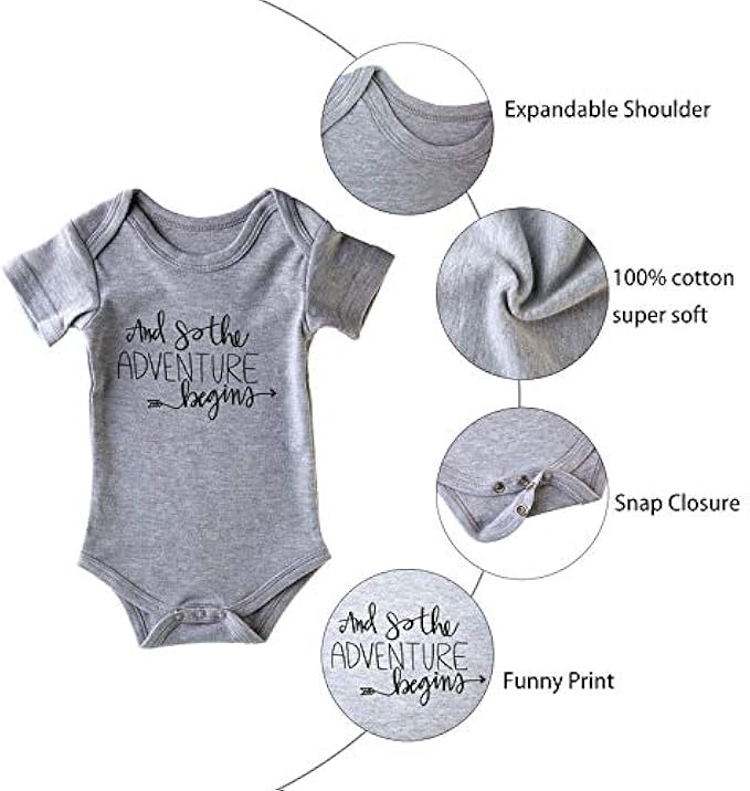 ?BABY ANNOUNCEMENT ONESIE & SOCKS: Neutral colors of our baby onesie & socks make newborn baby gift easy! The onesie with saying “And so the ADVENTURE begins” is made of 100% natural cotton, very soft and breathable. The funny sayings “if you can read this” on the non-slip socks will put a smile on everyone’s face.