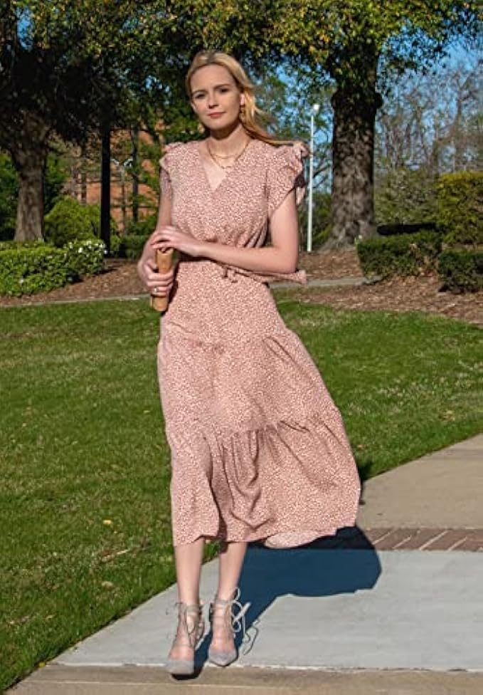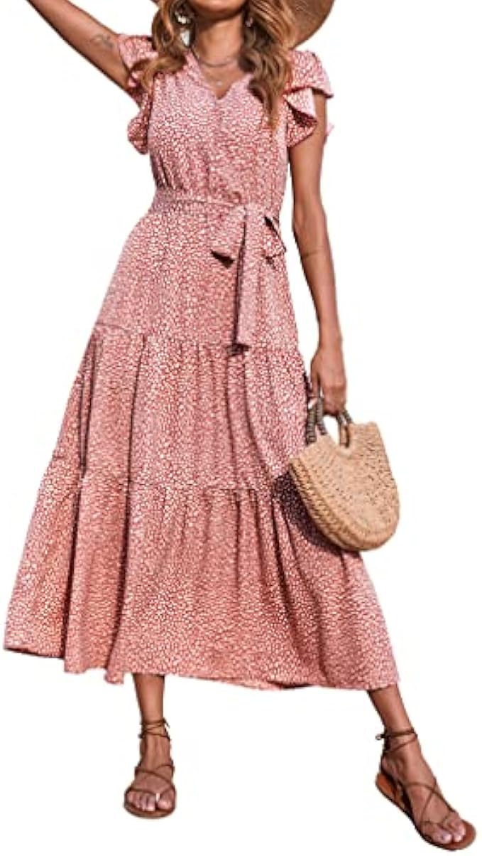 100% Polyester Imported Pull On closure Machine Wash Fabric: Our Womens Dresses Casual are Made of Lightweight,Soft and Skin-friendly Fabric. Bohemian style meets modern fashion in our Floral Maxi Dresses for Women 2023. Summer Classy Chiffon Long Sun Dress Brings You A Breezy and Comfy Wearing Experience. Features:Bohemian Short Sleeve Dress For Women Features Faux Wrap V-Neck,Leopard Print,Cute Short Ruffle Sleeve,High Waist,Tie Waist Dress and Swing Flare Long Flowy Dresses for Women 2023. Classic V-Neck Shows the Charming Collarbone, With a Hidden Buckle Design to Avoid Too Much Exposure Of The Chest. Decorative Self-Tie Belt Design Fully Showcases the Flattering Waistline. Elegant Tiered Boho Dress for Women:This a Must-Have Ditsy Floral Dress in Women’s Wardrobe. Five Printed Colors To Choose From:Black Fit And Flare Dress For Women,Blue Boho Maxi Dress For Women,Coffee V Neck Wrap Dress,Green Dress Floral,Boho Pink Dress For Women Collocation:Gorgeous Boho Dress,Floral Maxi Dress and Ruffle Dress. Wrap Maxi Dress for Wimen Can Be Easily Matched With a Hat,High Heels or Sandals. Lovable Beach Party Maxi Dress in Your Closet. Occasion:This Floral Long Dresses For Women Suitable For Many Occasions,Can be Used as Beach Dress,Wedding Guest Dress,Cocktail Dresses,Casual Dress for Women,Floral Dress for Women,Graduation Dress,Party Dress for Women,Nursing Dress,Bridesmaid Dress,Dresses for Beach Vacation,Date Dress,Maternity Dress For Photoshoot.