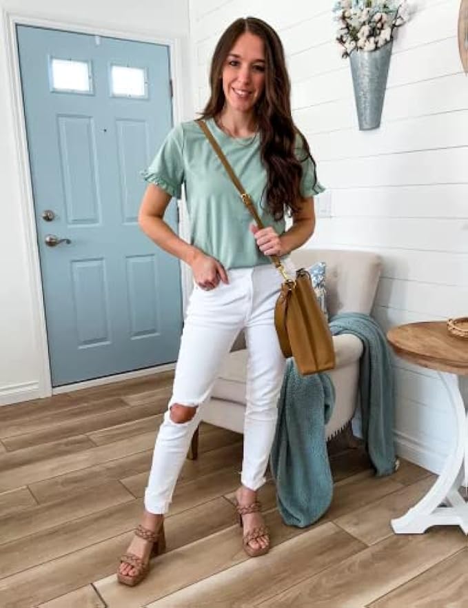 • FEATURES: womens t shirt Features Basic Round Neck T Shirts for Women, Short Sleeve Shirts for Women, Plain T Shirts for Women, Loose Fit, Womens Tunic Tops, Ruffle Sleeve Tops for Women, Cute and Casual Shirts for Women, Trendy and Fashion Summer Tops for Women, Ladies Tops and Blouses