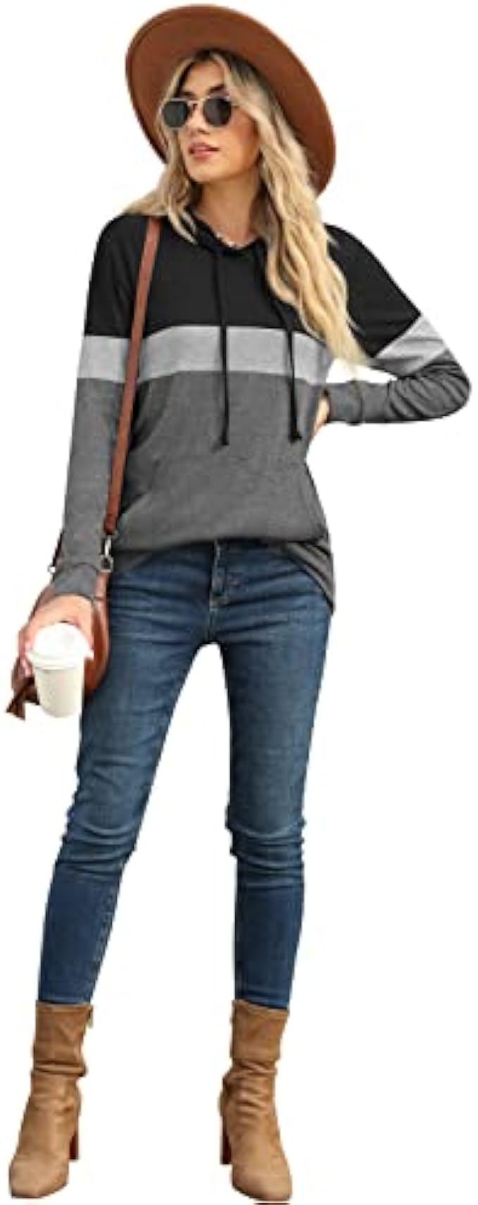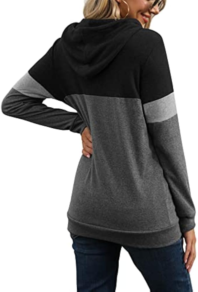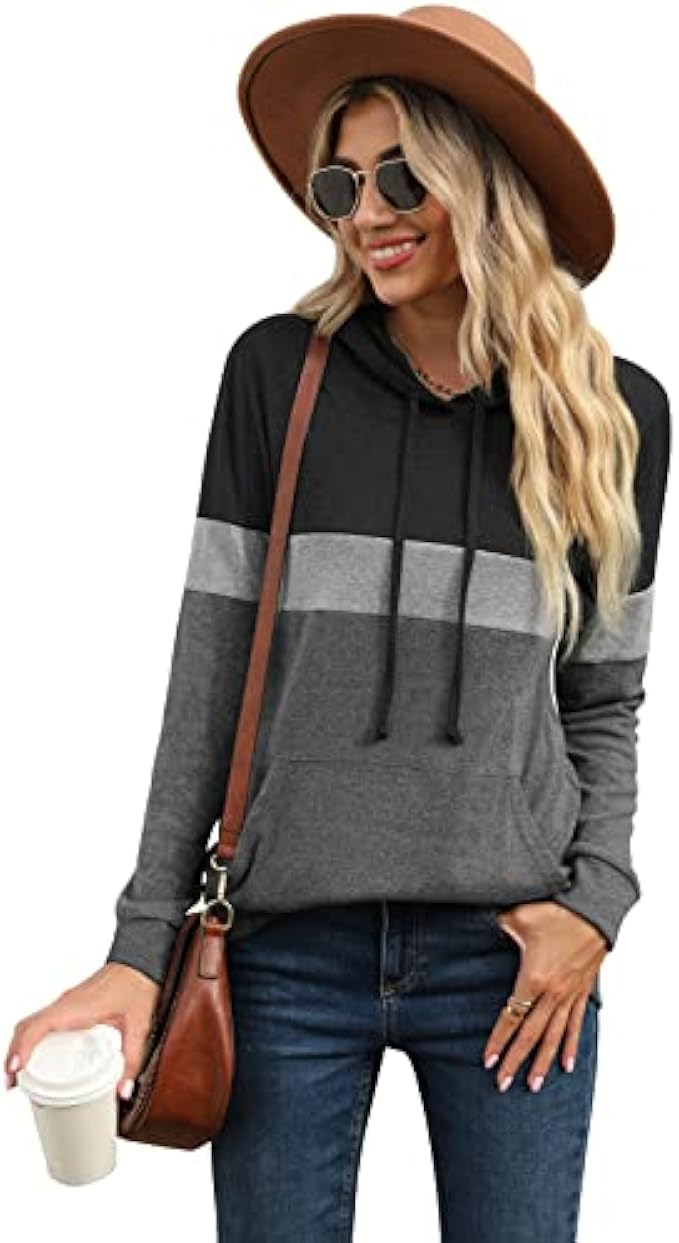 Polyester, Rayon and Spandex. Imported Pull On closure Machine Wash 【Features】: The fashionable hooded sweater with contrasting color design shows your confidence and vitality. Color-blocking fashion hoodie, stylish, classic and simple style, never out of date. 【Design】: Women's autumn drawstring pullover has three color blocks, adjustable drawstring, pullover, hoodie. A practical kangaroo pocket, Put your cold hands in when you feel cold, or put some personal belongings when not carrying a bag. 【Collocation】:The long sleeve pullover tops for women, length that cover the butt, perfects for matching with vests, sleeveless tops, leggings, skinny jeans and yoga pants for leisurely-relaxed look. 【Feeling】: Fall hoodies tops for women, the fabric is comfortable, soft, and light, wear it to keep warm and comfortable in autumn and winter, Adjust the hat string to control the size of the collar, The unique warm design of the cuffs tightening and waist hem to prevent cold wind from entering. 【Occasions】:Leisurely simple fashion style,the fall colthing suitable for shopping, walk, daily life,work, holiday, runining and any other occasions.
