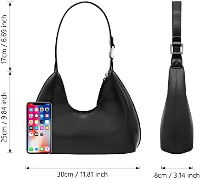 • 【Mini Purse Size】11.8" x 3.2" x 9.8" (L x W x H); handle height: 6.7 in. The black shoulder purse can easily fit daily demands, such as phone, umbrellas, keys, cosmetic, glasses cases, water bottle, etc.