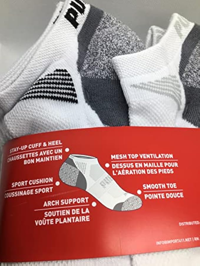 PUMA Mens No Show Low Cut Moisture Control Sport Socks
