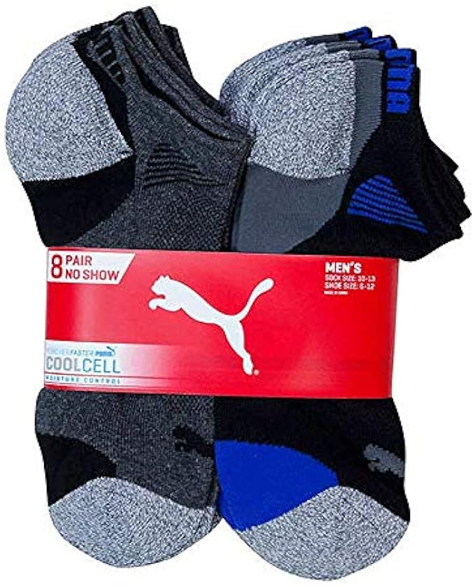 Puma Men's No show Sport Socks, Moisture Control, Arch Support (8 Pair)
