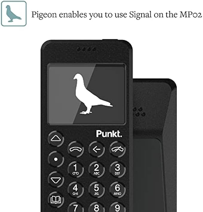 • Pigeon is an encryption feature on the MP02 that enables people to use the Signal end-to-end encrypted messaging service, free of charge. Use Pigeon on the MP02 to connect with contacts using the Signal app on a smartphone, tablet, laptop or desktop computer.