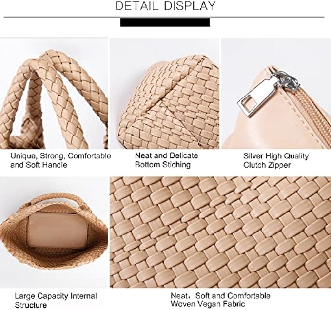 Leather Imported Leather lining Open closure 【Vegan Leather Tote】This handbag is made by weaving, which is fashionable and convenient, its fabric is soft and comfortable, and the professional production makes the texture of the fabric very neat and delicate. It is made of vegan leather instead of animal skin, no animals will be harmed. It represents the easy, laid-back, free and slow-paced life, and it is a symbol of our pursuit of a better life. If you want to go on vacation, beach or travel then it will be the ultimate choice for you. 【Size reference】Handbag: 10L*7W*10.5H inches, portable height is 4 inches. Clutch: 9L*2.5W*6H inches. Its weight is 1.8 pounds. 【Large capacity】 it can hold 9.7 inch tablet, newspaper, books, keys, cosmetics, etc., the clutch bag can hold such as your coins, cash and mobile phones, its pocket has a wide field of vision and quick access, making it easier for you to find what's inside. 【Versatile and Multipurpose】 You can take it to work, dining at restaurants, watching movies, traveling, shopping, going on vacation, and more. You can also use it as a vegetable basket. When you go to the market to buy vegetables, you can put tomatoes, potatoes and other vegetables or meat in it, which is very convenient and practical. Best gift for your friends, wife, mother, and love one. 【Queenoris' Professional Services】 Queenoris focuses on producing high-quality ladies handbags. And we pay more attention to the buyer's service and shopping experience. If you have questions or are not satisfied with our services or products, please let us know and we will do our best to help you.