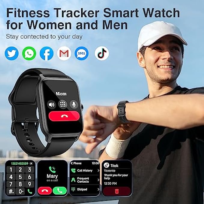 ✅【24/7 Monitor Your Health】Our fitness smart watches with advanced sensors continuously monitoring all-day your heart rate, blood oxygen, and stress level, ensuring that you are always aware of your physical condition. Whether you're working out, going for a walk, or just sitting at your desk, you have accurate and up-to-date information about your health. ✅【Use Alexa Hands-free】Fitness tracker smartwatches with Alexa Built in you can ask for news, weather, and other information without even touching your phone or watch. and other convenient features such as an alarm clock, weather forecast, sedentary reminder, menstrual period record, drink water reminder, remote camera, music control, etc. ✅【Track Your Sleep】The sleep tracker watch helps you understand your sleep patterns, including how long you sleep, light sleep, deep sleep, when you wake up, and how restful your sleep is. This information can help us understand the sleep quality every night. Make adjustments to improve your overall sleep quality. ✅【Smartwatch that Can Call and Receive Text】with Bluetooth connectivity, this Bluetooth fashion smart watch allows you to Answer/make calls, and receive smart notifications for SMS, Email, and SNS on your watch without taking out your phone. Vibration ensures we never miss an important call or message. ✅【7-Days Long Battery Life】Enjoy up to 7 days of battery life on a single 2.5 Hours charge with Quican multifunctional smart watch, so you can use your watch all week without worrying about recharging. ✅【5 ATM IP68 Waterproof Multi-sport Tracking Watch】Whether you're running, swimming, or cycling, this water proof smart watch for women/men has you covered with dedicated modes for over 100 activities. It is safe to wear while swimming or showering, so you don't have to worry about water damage. ✅【100 Watchface Available & Customizable】Choose from a variety of wallpapers on our touch screen smart watch's APP, or customize any of your favorite pictures on your phone to create a unique look as your personal style. You can easily switch between different watchfaces, so it always matches your mood and outfit ✅【Keep Track of Your Steps】Encourages you to stay active throughout the day, the step tracker fitness watch for Males and Females helps you monitor your daily steps, duration, distance, and calories burned ✅【Women/Men Smart Watches for iPhone Android】This Fitness Watch is compatible with Android-iPhone iOS ( iOS 9.0, Android 6.0 or above) and most smartphones running Bluetooth 5.3 or above, this compatibility ensures that the fitness smartwatch works with a wide range of your devices ✅【Fantastic Gift Idea for Women and Men】This 1.8 Inches Square Facce Smart Watches with a sleek and modern design is both functional and fashionable, making it the perfect accessory for any outfit or occasion. It's a fantastic gift idea for anyone who loves technology, staying connected, and monitoring their health and fitness goals