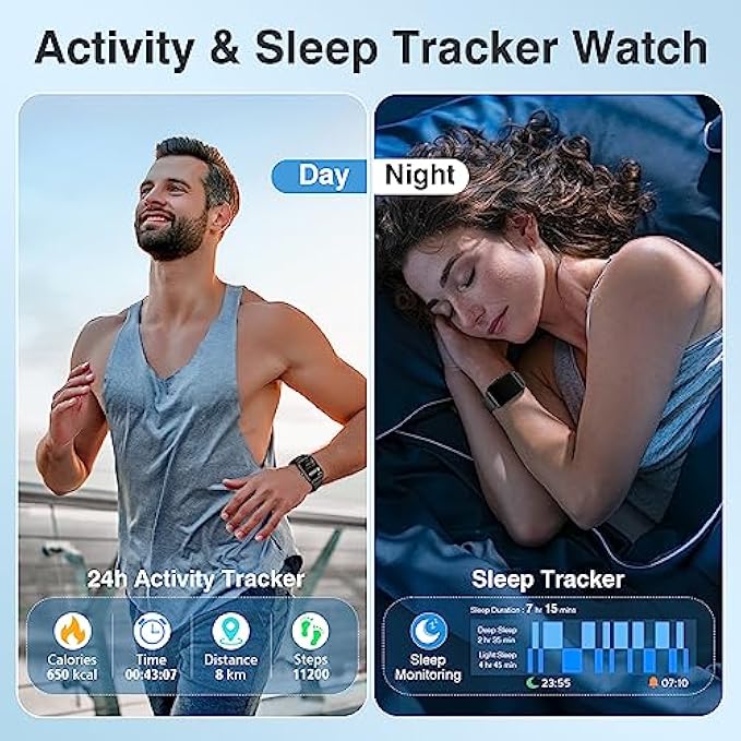 • ✅【Track Your Sleep】The sleep tracker watch helps you understand your sleep patterns, including how long you sleep, light sleep, deep sleep, when you wake up, and how restful your sleep is. This information can help us understand the sleep quality every night. Make adjustments to improve your overall sleep quality.