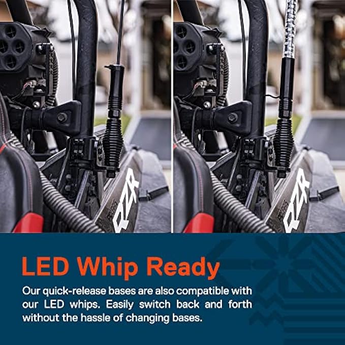 LED WHIP READY - Our quick-release bases are also compatible with all of our LED whips. That means your not limited to just an LED whip or just a flag pole on your UTV. Easily switch back and forth without the hassle of changing bases.