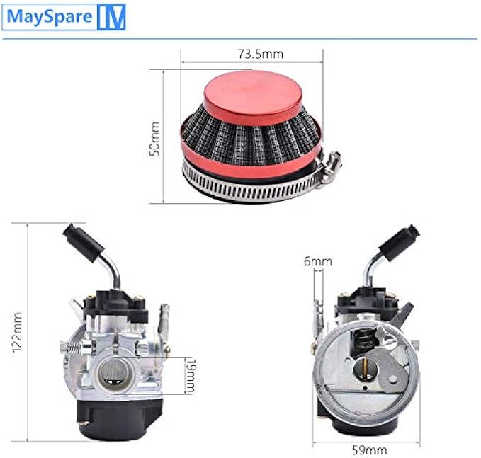 19mm Carburetor With Filter: 58mm/ Color: Red and Blue