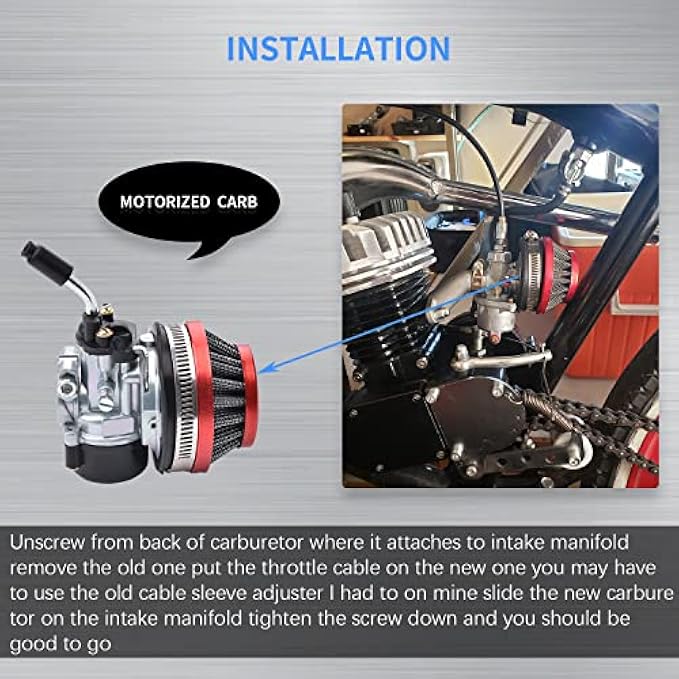 Note:You have to wrap several layers of thread tape around it if you are replacing the NT carb that came with your 66/80cc bicycle engine, and if you are at a higher elevation you may need to change jet size for this carburetor to run properly.