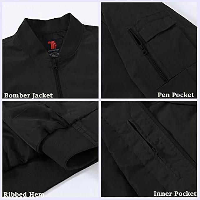 Rdruko men's lightweight bomber jacket features a full-zip front and a bomber collar, ribbed cuffs and hem for a comfortable fit.