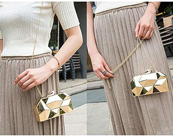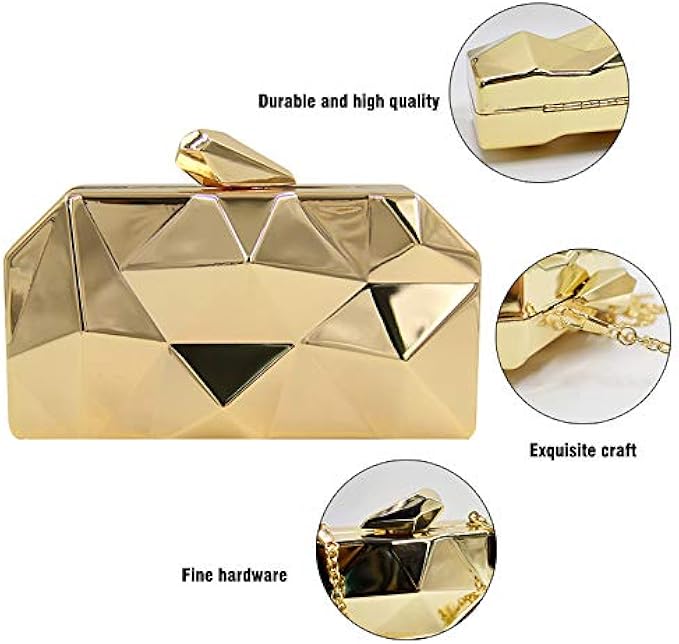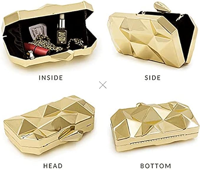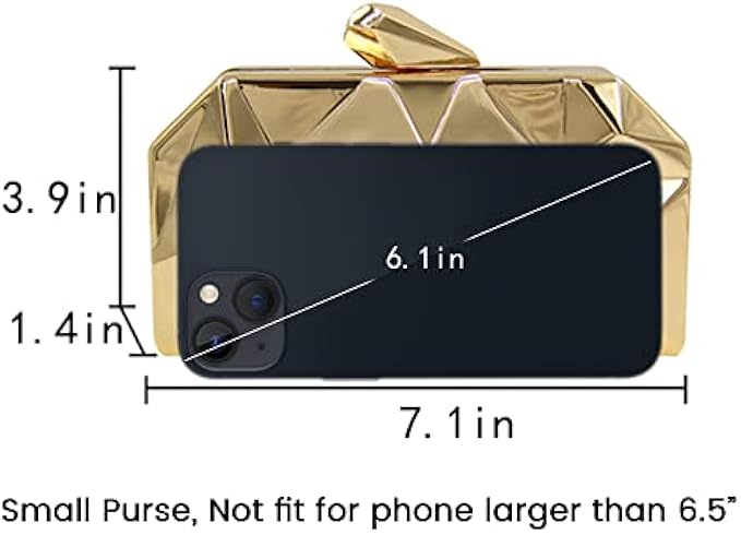 Compact handy clutch design, looks small yet roomy enough for your cell phone, lip stick, cards, tissue, etc; twist magnet lock, fancy metallic colors, great for wedding, parties, dating, shopping, and workplace.
