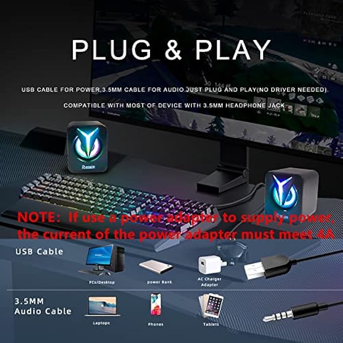 • 【After-sales support】 SP5199 laptop speakers backed by RECCAZR 1-year limited warranty. Note:If use a power adapter to supply power, the current of the power adapter must meet 4A.