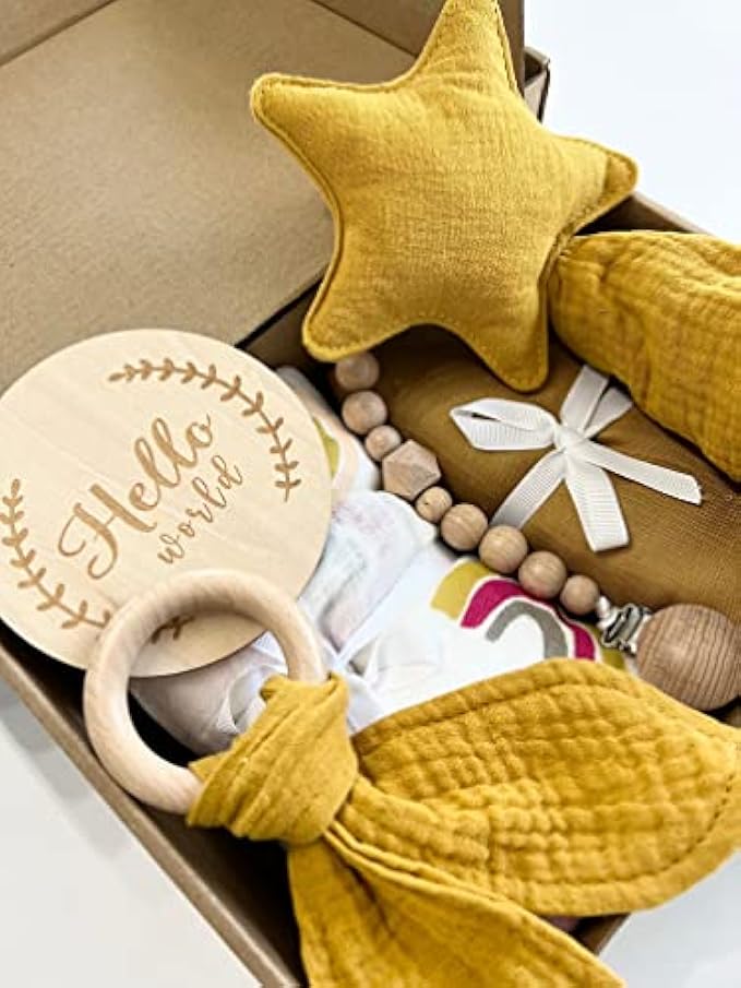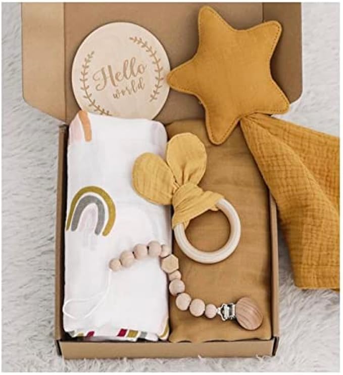 Remi & Rhino Boho Pink Rainbow Baby Gift Set Newborn Gift Swaddle Blanket Rattle Silicone Pacifier Clip Baby Shower Hospital Giftset (Girl)