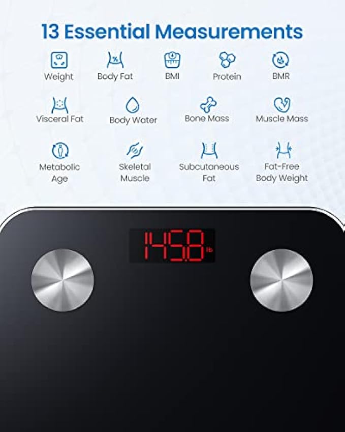 Accurate Measurement: The maximum capacity of body fat scale is 396 pounds/180kg, with 4 high-precision sensors that measure in 0.2 pounds/0.05kg increments to ensure the accuracy of each value.