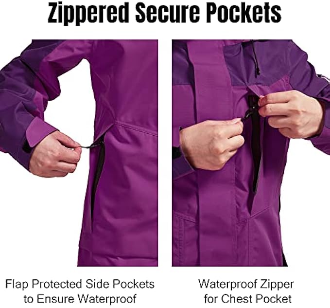 【MULTIPLE POCKETS】: The rain coast have 1 zippered chest pocket, 1 inside deep pockets and 2 zippered handwarmer pockets which With waterproof zipper and ideal for putting things in and release your hands.