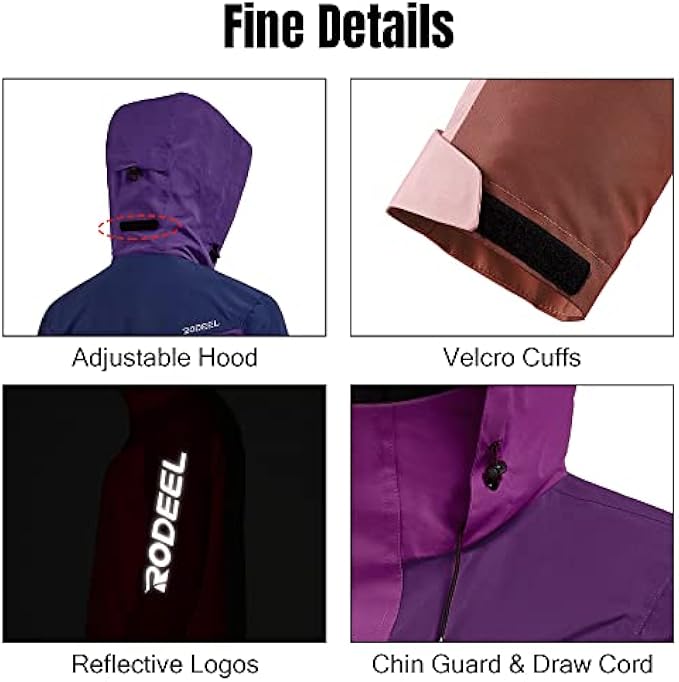 Rodeel Women's Waterproof Raincoat Outdoor Hooded Rain Jacket Windbreaker