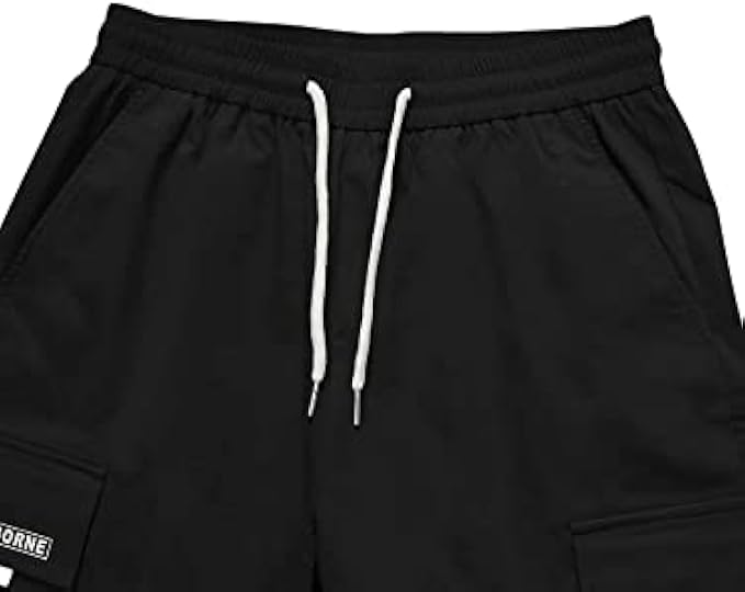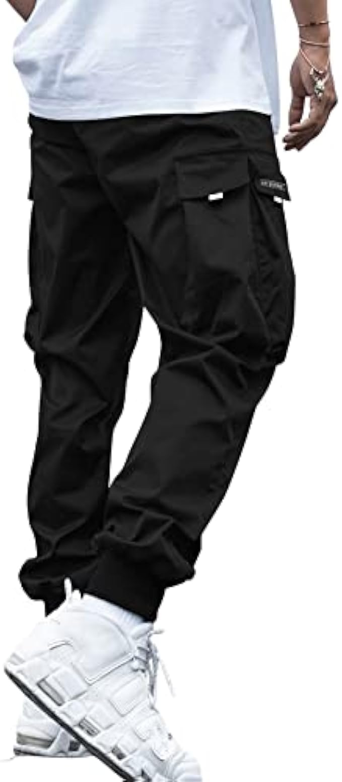 • Design: Solid plain, casual drawstring elastic waist, street style flap pocket, letter graphic on the pocket, regular fit cargo pants