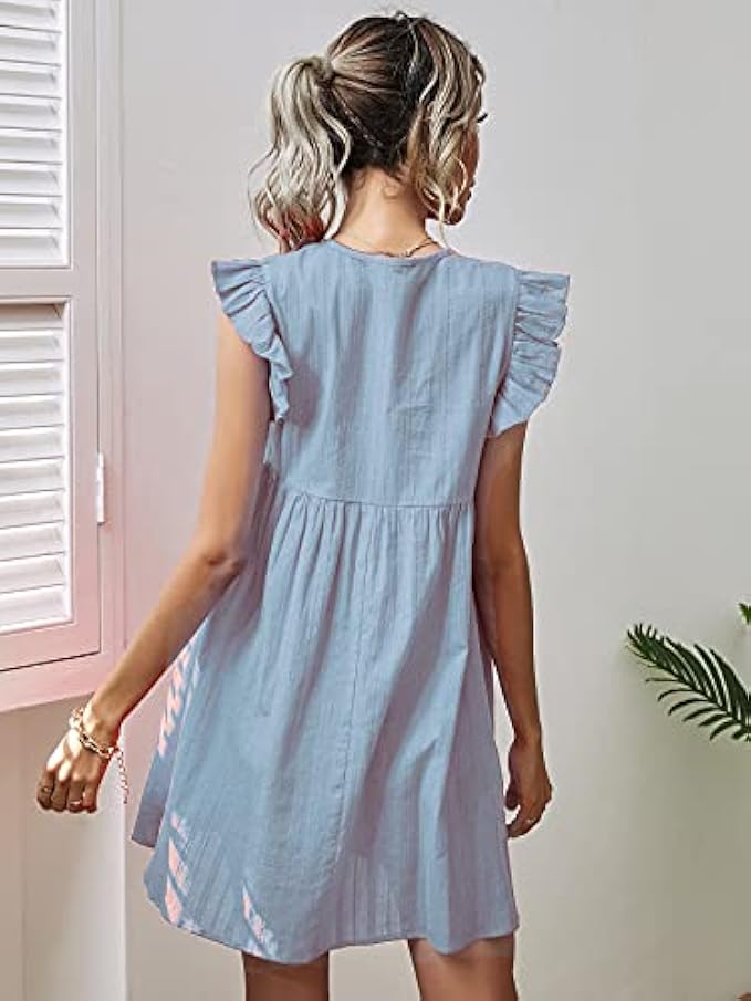 Romwe Women's Plain Short Sleeve Floral Summer Floral Lace Prom Party Shift Dress