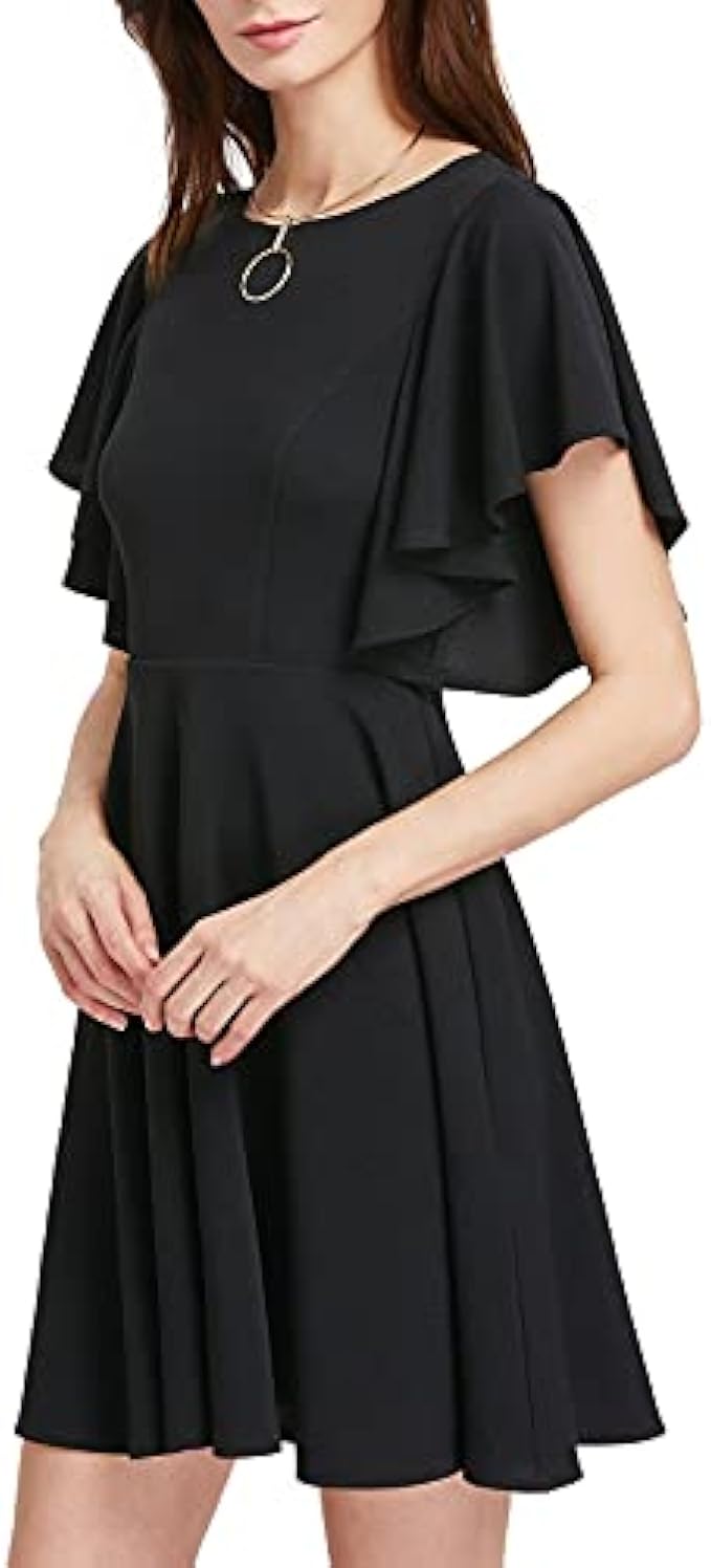 • Scoop Neck, Flutter Sleeve, High Waist, Above Knee, Invisible Zipper Back