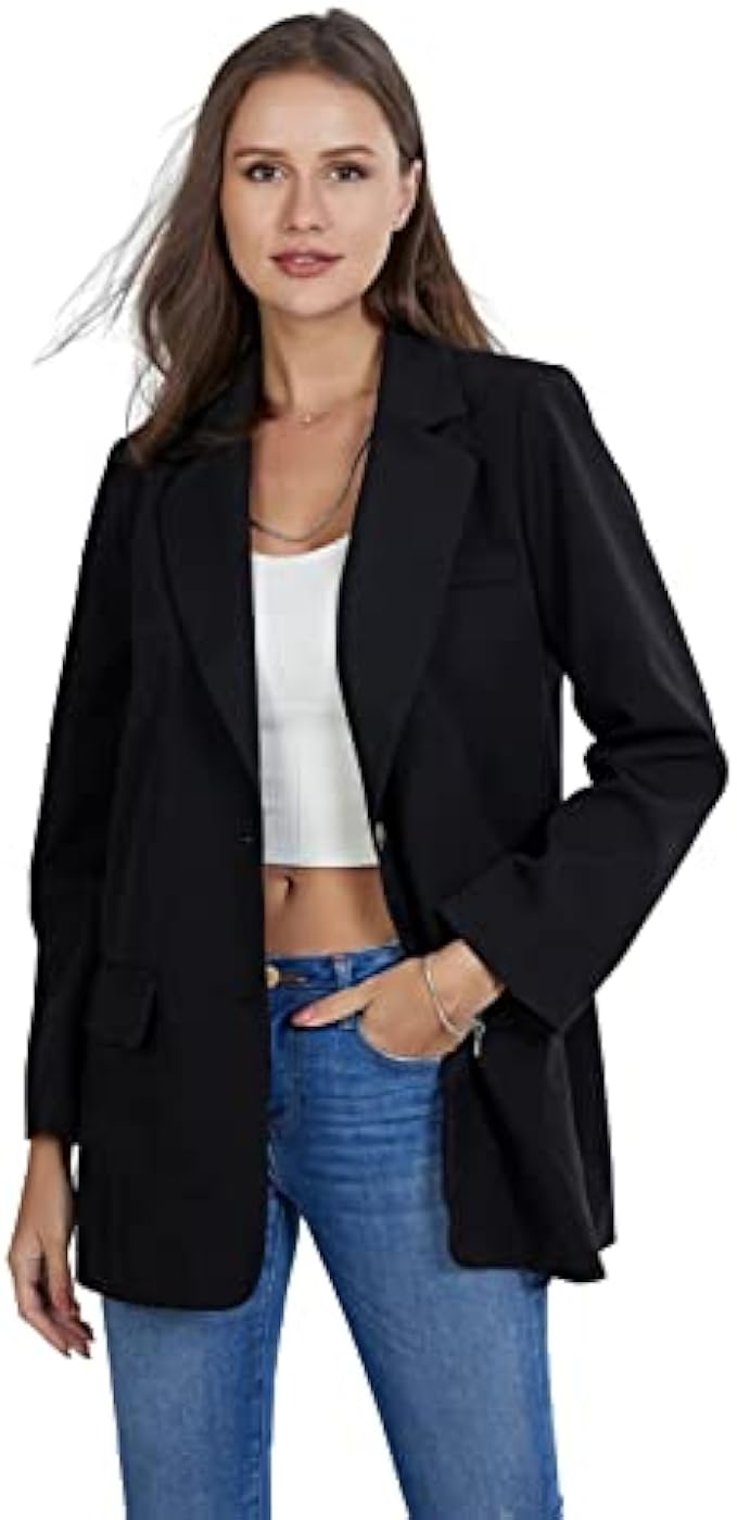 ROTOXA Womens Casual Blazers Open Front Long Sleeve Lapel Collar Button Work Office Suit Jacket Blazer with Pockets