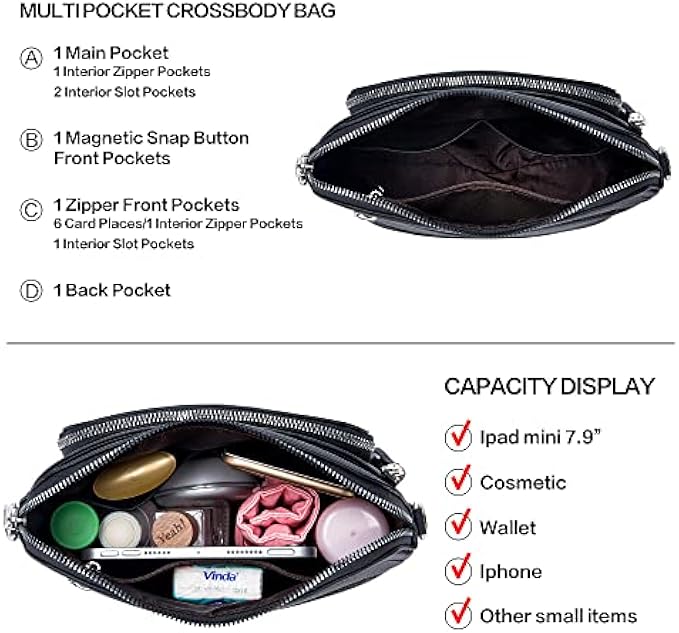 Cotton,Leather,Pu Leather Imported ?HIGH QUALITY MATERIAL - Medium Crossbody Shoulder Bag is made from high quality 100% eco friendly vegan PU leather,without any weird smell.Polyester cotton lining, Casual and outstanding , Stylish style,With high quality tone hardware, Durable and fashionable.PU leather is easy to clean, simply just wipe with water to keep this bag looking new. ?STYLISH & FUNCTIONAL - This Wallet Purse measures 9.8" H x 9.8" W x 4" D. Main compartment with zipper closure; Anti-theft pocket is hidden on the back to protect valuables;Front smart-phone pocket with magnetic buckle ,safe and easy use;Front zipper pocket has 6 card slots with an RFID blocking feature, fit credit cards,ID,Driver's License,checkbook,passport,receipt ,can be used as wallets. ?SMART CONSTRUCTION & STYLE -1 Main Pocket(1 Interior Zipper Pockets,2 Interior Slot Pockets) ,1 Magnetic Snap Button Front Pockets, 1 RFID Front Zipper Wallet Pocket ( 6 Card Places, 1 Interior Zipper Pockets,Interior Slot Pockets),1 Back Pocket.Large capacity can hold the items you need for daily travel, such as wallet, cell phone, keys, cosmetics, etc. All a women’s purse needs are spacious compartments and gorgeous looks and our handcrafted cross body bag fulfills both. ?BEST CHOICE FOR GIFT - Multi pocket crossbody bag with a removable and adjustable wide shoulder strap(its wide strap ensures it feels soft and comfortable on the shoulder, perfectly fit for constant use and travel,),it can work as crossbody bag ,single shoulder bag or daily clutch,is perfect gift for any occasion like christmas,valentines,birthdays and anniversaries.Suitable for shopping, dating, traveling, workout, walking and any other occasions you don't want to take a bulky purse. ?MAGNETIC CLOSURES CROSSBODY WALLET PURSE - Extra metal Snap Button Front Pockets designed for your cell phones, easy access in & out.Keep you stuffs safe.On a sunny day, carrying a handbag is not an option. This is a women's sling bag, which can be used for daily commuting, air travel, visiting parks or spending the night with friends in clubs.