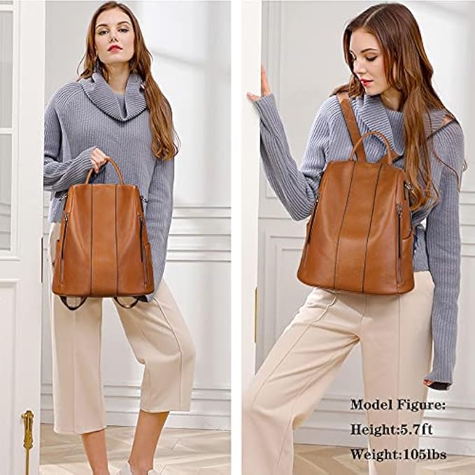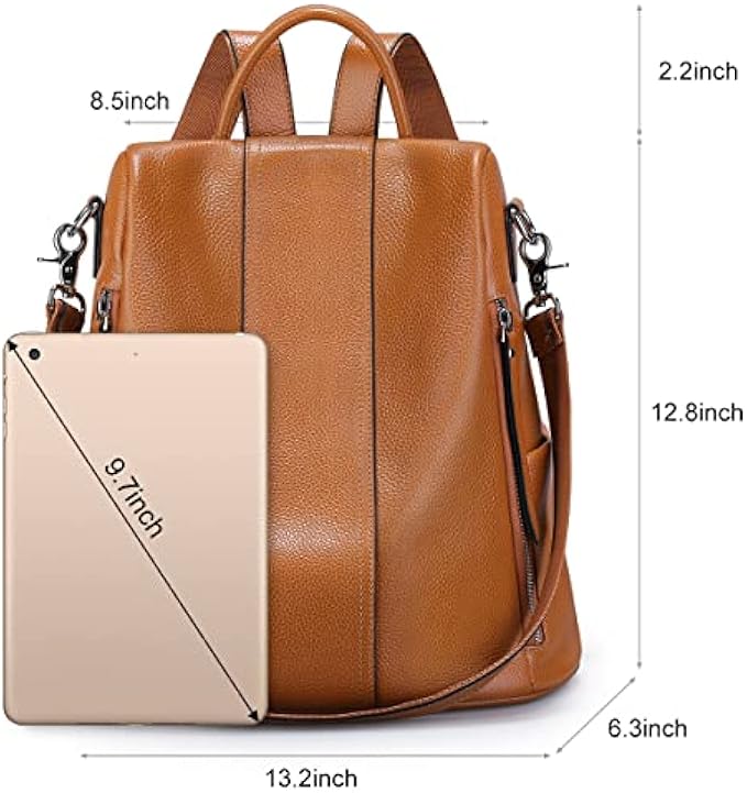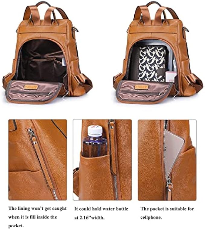 Genuine Leather Imported Satin lining Zipper closure Wipe with Dry Cloth 【Genuine Leather Backpack】Soft Genuine Leather, High-grade Silver Zipper, Satin Lining, Excellent Seam, we select every piece of material carefully, and make it impeccable in its workmanship 【Anti-Theft Design】Large pocket with zip closure on the back. This special design is to upgrade the safety for your phone, purse, cards, etc. It can be used as a rucksack, travel daypack, shopping bag and etc 【Roomy enough for daily use】 The backpack purse for women features 1 main compartment with an interior pocket, 2 interior slit pockets, 2 side pockets, and 2 front pockets with smooth zippers. Its size 13.2"x 6.3" x 12.8"(L*W*H) is right fit for traveling, office, work, business and road trips, college, and any other occasion 【3 Ways To Wear】This trendy women backpack purse comes with an extra shoulder strap, you can use it as a Tote Bag, Shoulder Purse, or Backpack 【Perfect Gift Choice】It is a perfect gift for women on Birthday, Anniversary, Valentine's Day, Christmas, Graduation. A genuine leather bag is always right choice for your mom, daughter, friends, or yourself