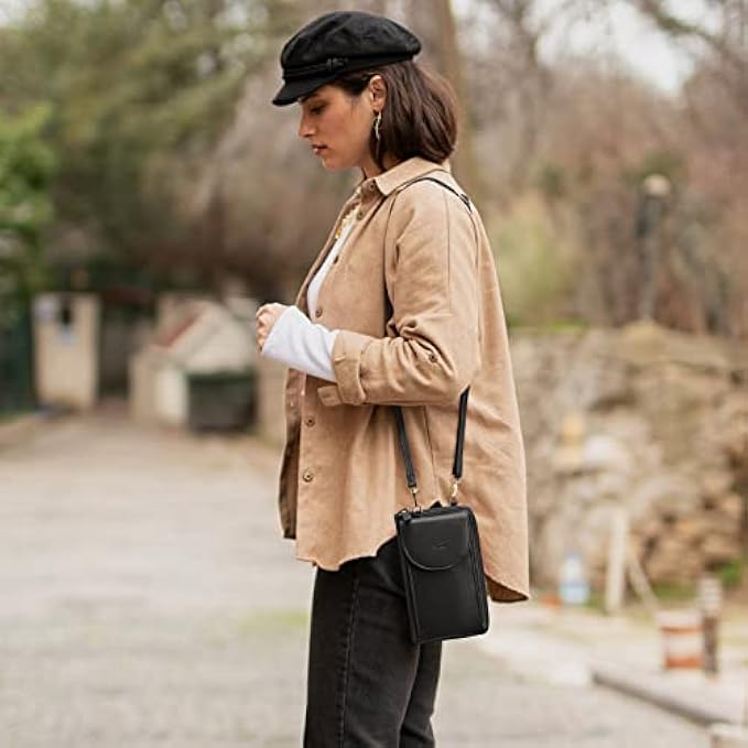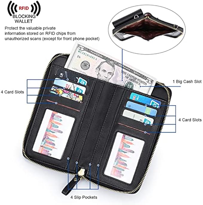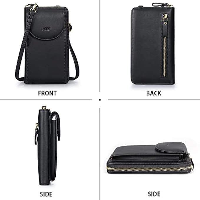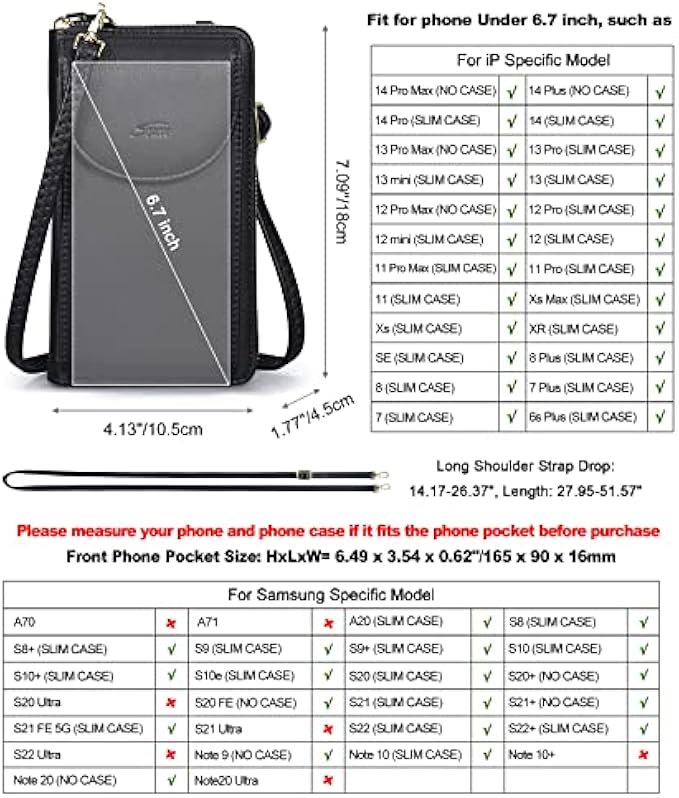 Faux Leather,Leather,Pu Leather Imported Zipper closure RFID BLOCKING FUNCTION: It is made of soft and durable PU leather (one kind of faux leather). Zippers are smooth enough and there is no need to worry about stuck or separation issues. High-quality golden metal hardware is highly resistant to rust. It is equipped with advanced unique proprietary BLOCKING Material, which blocks RFID signals and protects the valuable private information stored on RFID chips from unauthorized scans The FRONT PHONE POCKET SIZE (H/L/W): 165 x 90 x 16mm, FITS UP TO 6.5" PHONE (WITH SLIM CASE): For Phone 14 Pro, 14, 13 Pro, 13, 13 mini, 12 Pro, 12, 12 mini, 11 Pro Max, 11 Pro, 11, 11,SE, XS Max, XS, XR, X, 8 Plus, 8; For Samsung Galaxy A20, S8, S8+, S9, S9+, S10, S10+, S10e, S20, S21, S22, Note 10; (WITHOUT CASE): For Phone 14 Pro Max, 14 Plus, 13 Pro Max, 12 Pro Max; For Samsung S20+, S20FE, S21+; Note 9, 10+, 20. Please measure your phone and phone case if fits the pocket before purchase STRONG MAGNETIC SNAP CLOSURE - keeps your phone safe while easy opening for handy use. Your phone never goes digging in the bottom of the bag or falls out of pocket. The shoulder strap drop: 14.17-26.37" and length: 51.18"; Net weight: 0.50lbs. The WHOLE PURSE SIZE: 4.4(L) 1.96(W) 7.2(H)" STRUCTURE: Exterior - 1 Front Phone Pockets with magnetic closure( fits up to 6.5" phone, like Phone 8, 8plus, X, XR, Xs max, etc.) and 1 zippered Back Pocket for cards or coins; Interior - 1 Main Compartment for cash, cards, tickets, passport or another small item; 8 credit card slots and 4 slip pockets SATISFACTION GUARANTEE: Come with One Year Warranty. S-ZONE makes a great effort to ensure the EVERY DETAIL of this UPGRADED crossbody phone bag, aiming to provide a long-term useful bag for customers. If you have any questions, quality issues or you are not satisfied with our product, please feel free to contact us by email via Amazon and we will provide you with the best solution
