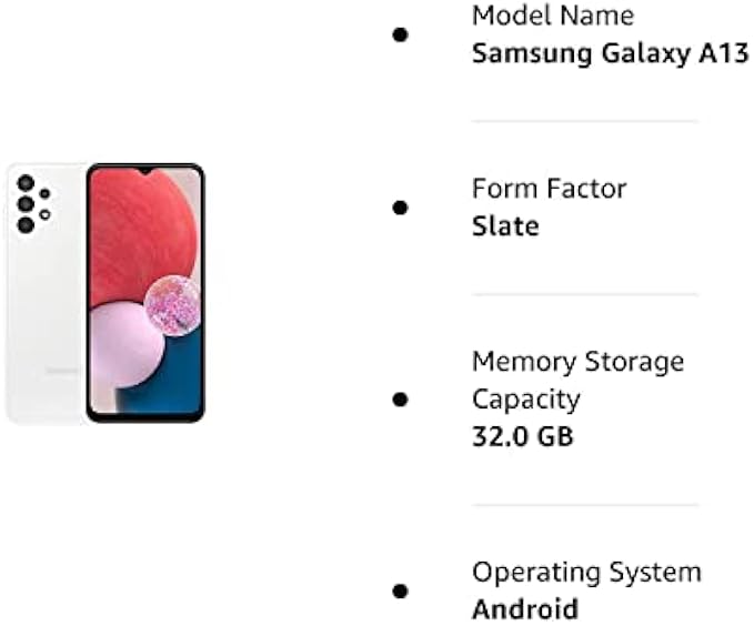 Samsung Galaxy A13 (SM-A135M/DS) Dual SIM,32 GB 3GB RAM, Factory Unlocked GSM, International Version - No Warranty - (White)